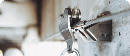 Горизонтальная гибкая анкерная линия для безопасной работы на высоте на любых типах горизонтальных поверхностей. Может быть установлена в пожароопасных и взрывоопасных зонах.