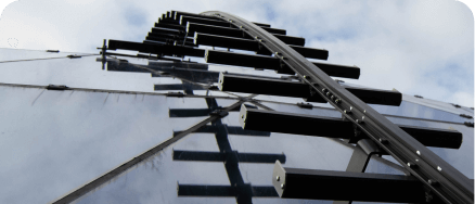Средство защиты от падения с высоты интегрированное в лестницу. Может быть установлено в пожароопасных и взрывоопасных зонах.
